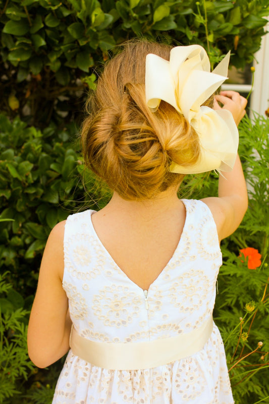 Susanne Lively Girls Sleeveless Ivory / White Eyelet Dress - V-Back
