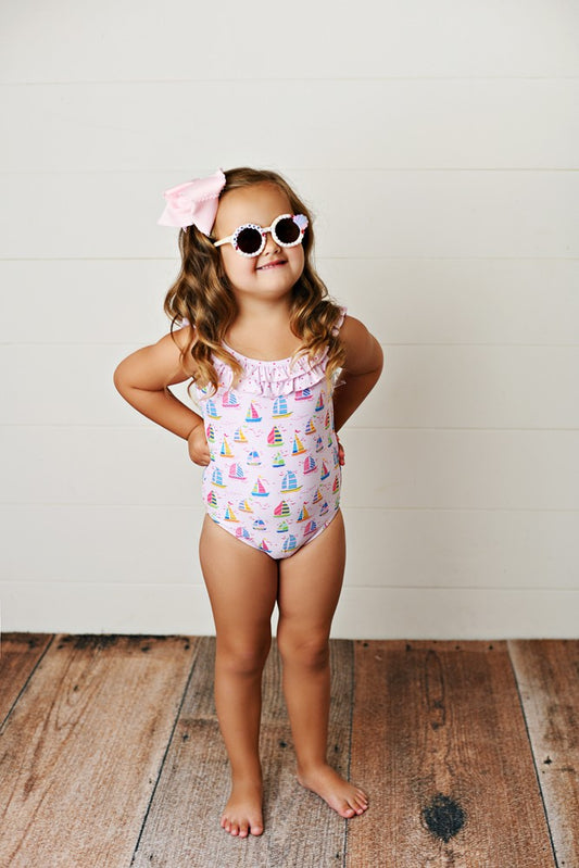 Swoon Baby Girls One Piece Swimsuit - Pink Sailboats