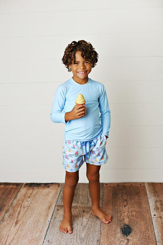 Swoon Baby Boys Swim Trunks - Blue Sailboats