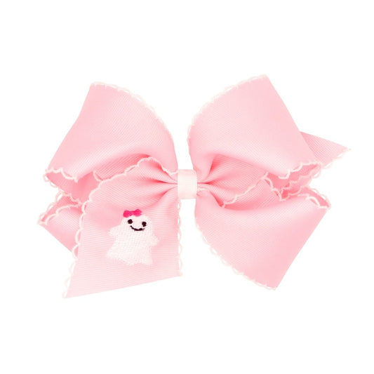 Wee Ones Girls Hair Bow on Clip - Embroidered Halloween Ghost - Pink