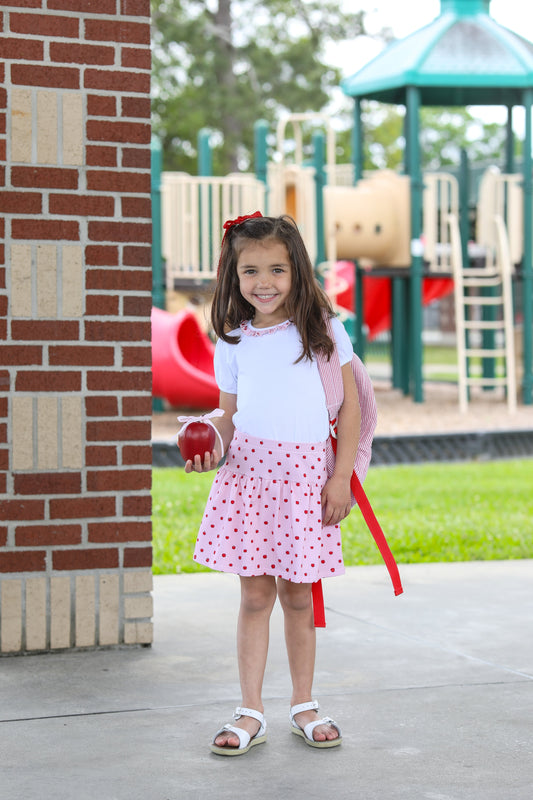 Trotter Street Kids Girls Pink Apple Print Skort with Trimmed Top