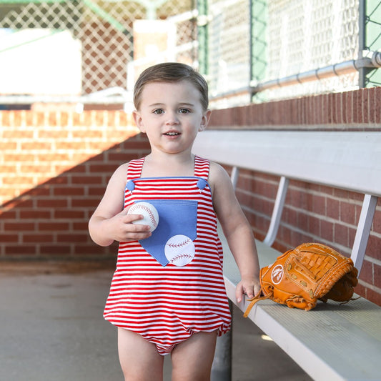 Trotter Street Kids Baby Boys Red Baseball Pocket Sunsuit