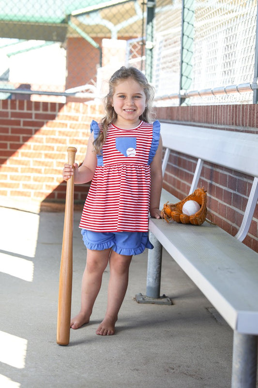 Trotter Street Kids Girls Red Baseball Pocket Ruffle Short Set