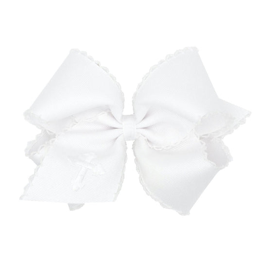 Wee Ones Girls Monotone Moonstitch Bow - White with Embroidered Cross - White