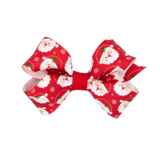 Wee Ones Girls Hair Bow on Clip - Santa Print on Red Bow