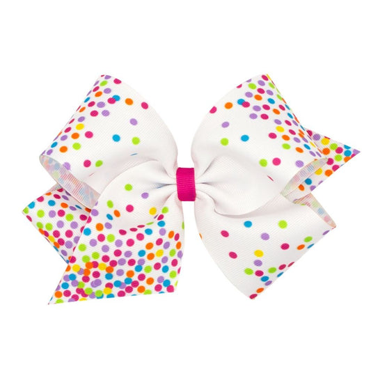 Wee Ones Girls Printed Grosgrain Bow - Confetti Dots Print
