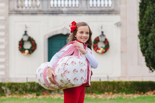 Sal & Pimenta Boys One Piece Zipper Pajamas - Classic Vintage Santa Claus - Red