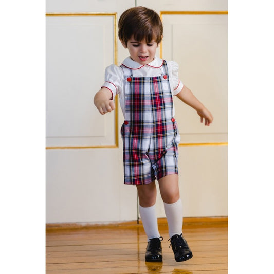 Sal & Pimenta Boys Red Jolly Tartan Holiday Plaid Overall Shortall