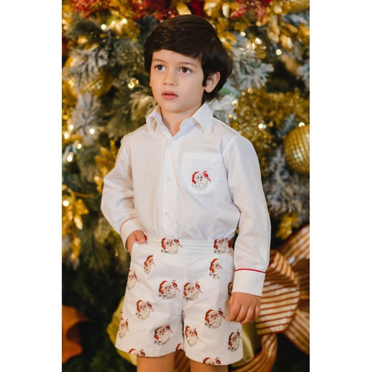 Sal & Pimenta Boys White Shirt - Long Sleeves - Santa Embroidery