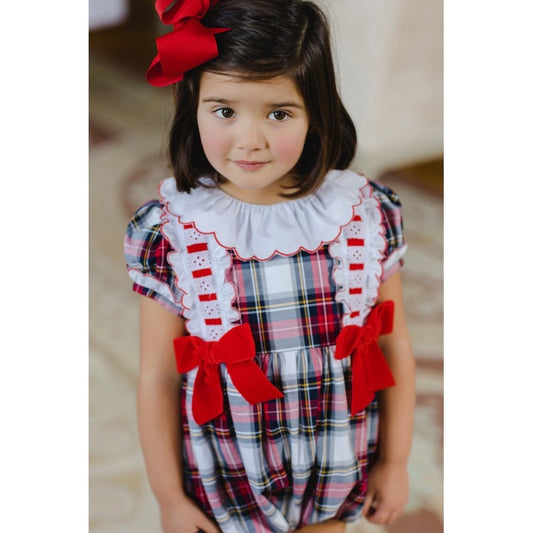 Sal & Pimenta Girls Bubble - Jolly Tartan Holiday Plaid with Red Bows