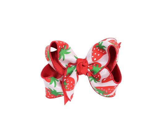 Beyond Creations Girls Hair Bow on Clip - Red Strawberry Print