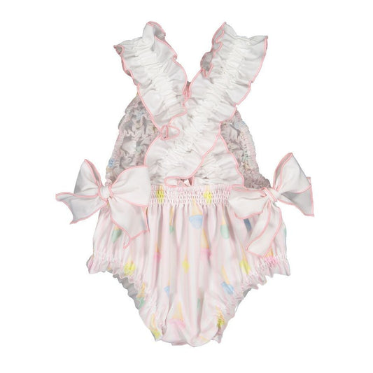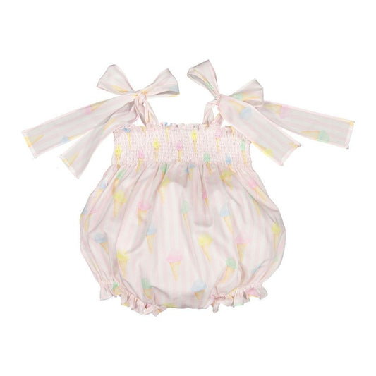 Sal & Pimenta Girls Pink Ice Creams Smocked Bubble - Ties at Shoulders
