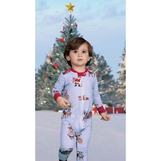 Sal & Pimenta Boys Pajamas - One Piece - Busy Santa Blue
