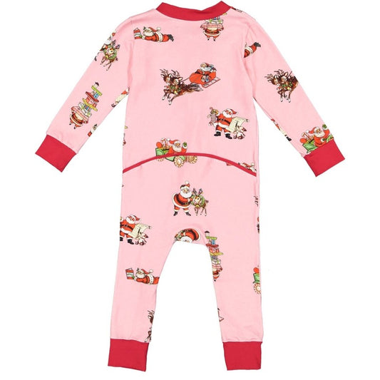 Sal & Pimenta Girls Pajamas - One Piece - Busy Santa Pink